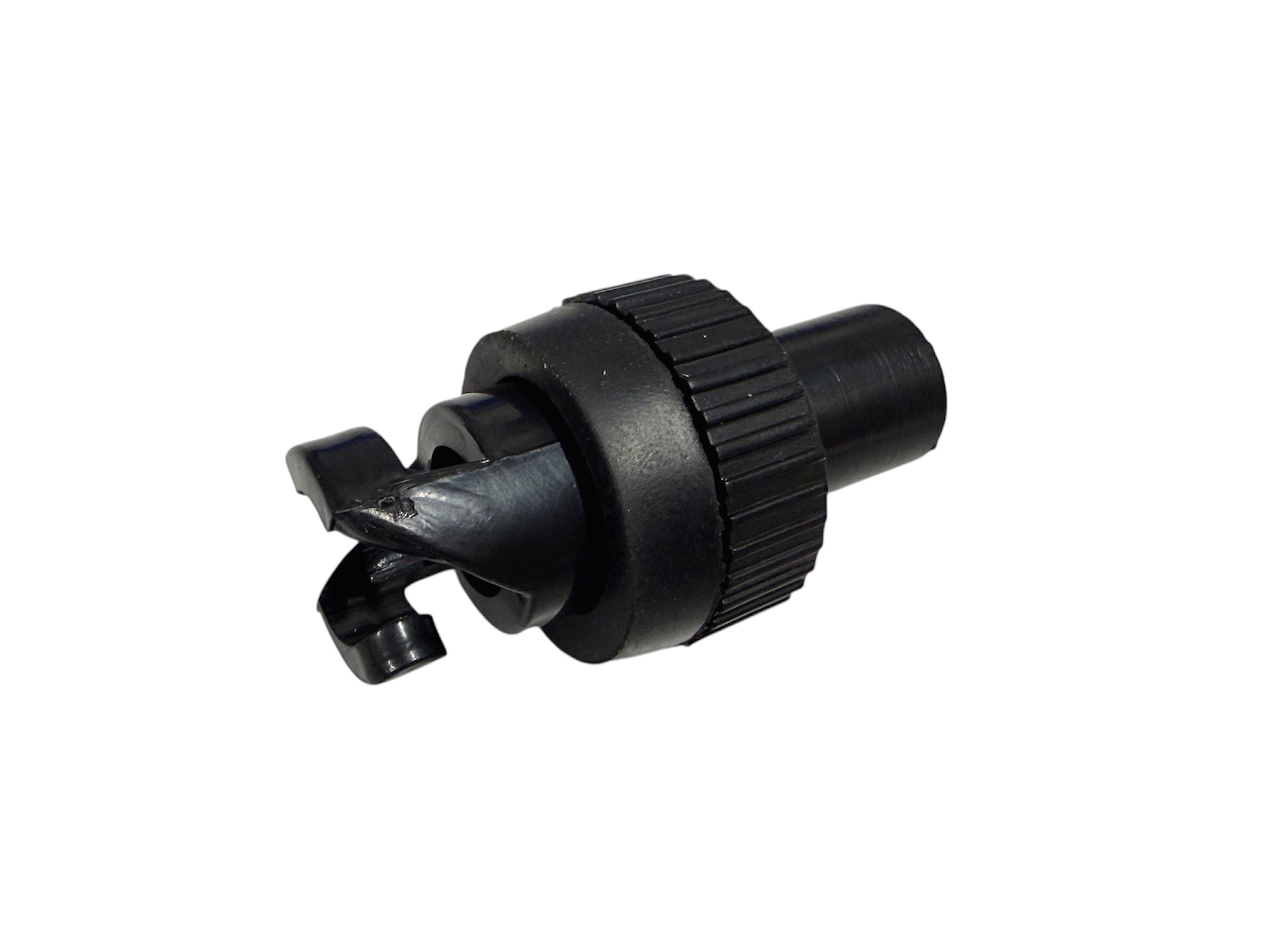Adapter voor het aansluiten van een pomp op de Belly boot. Het koppelstuk is voorzien van een bajonet, welke in het ventiel te fixeren is, door een kwartslag te draaien na het inbrengen.