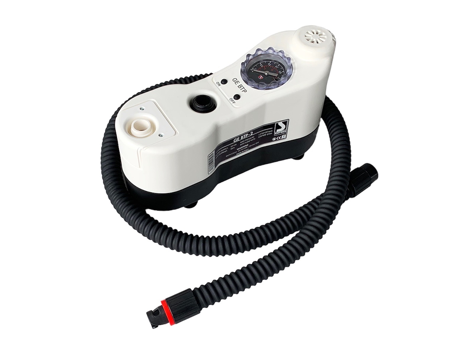 De Bravo Scoprega GE BP-2 elektrische luchtpomp een van de beste elektrische pompen die er is voor het opblazen van rubber, bellyboten, kites en SUP's.